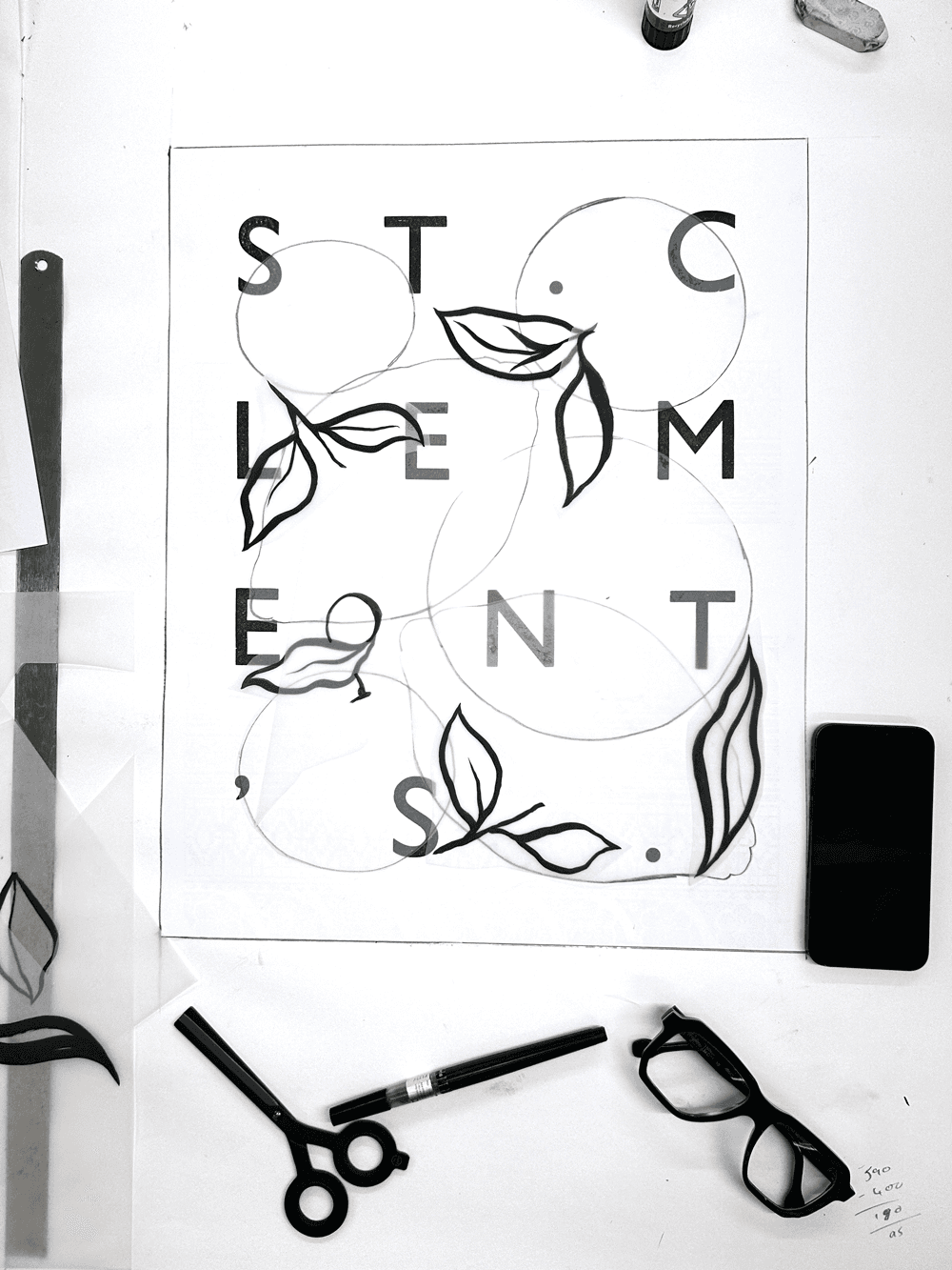 Original letterpress print of oranges and lemons over printed with wood type. The lemons are hand-rolled in a gradient of lemon to a deep yellow. 40 x 50cm white paper.